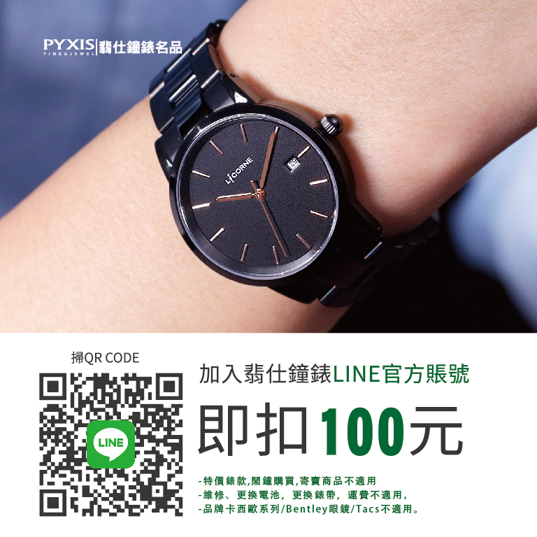 凡購買PYXIS翡仕鐘錶商品 單筆消費滿: 1.滿3000現折300 2.滿5000現折600